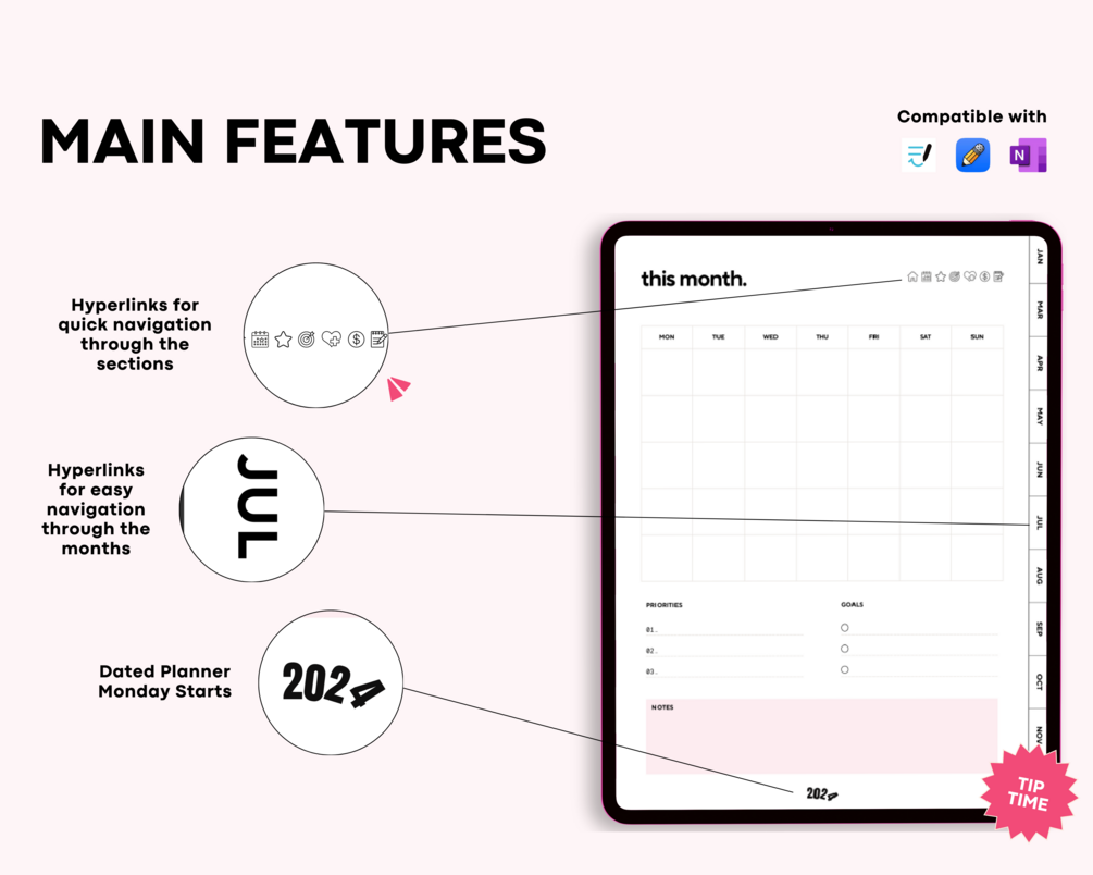 🚀 Don't settle for ordinary goals – embark on an extraordinary journey with the 2024 Ultimate Digital Planner and make this year your most accomplished yet!